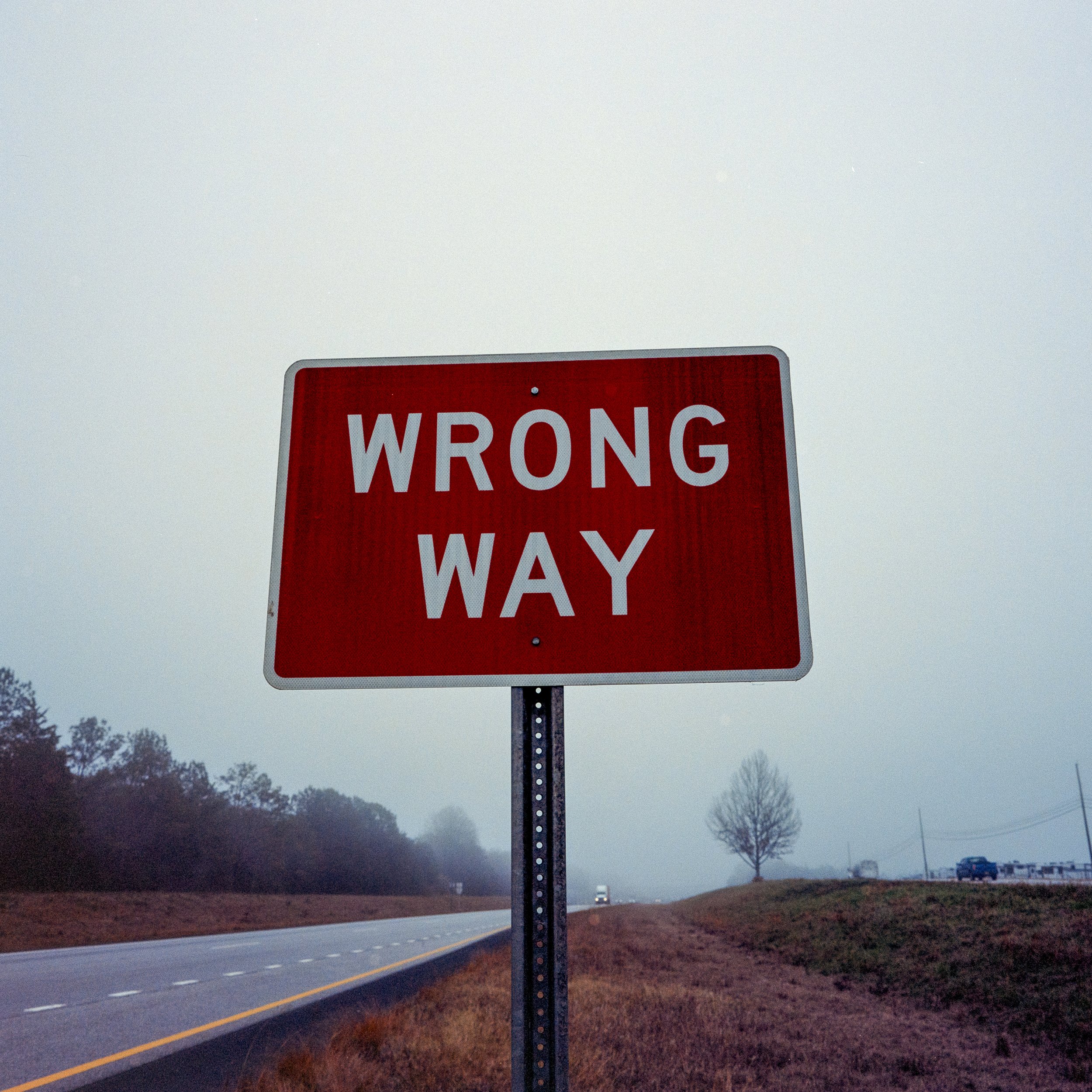 Soon after the state line, we’re stopped for a while. Not by traffic. By a freight train. We reckon about two miles long. No way around it. No alternative road. Just waiting. Cars idle. People step out. The guy next to us checks his phone, then gives up. Wagons slide by; the same shape repeating until it stops meaning anything. I take a few shots. I have time to find an angle.